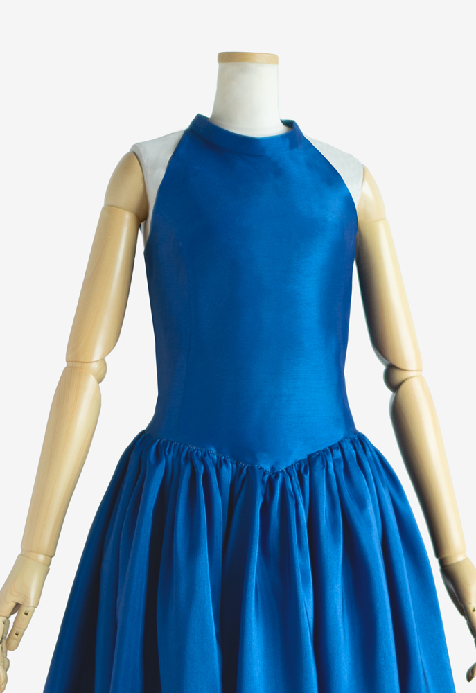 特徴的なパイピングの設えを持つ、フラドレス03をご注文頂きました。使用した生地は ブルー トーチジンジャー柄 のハワイアンファブリック。清々しいお色味は穏やかに広がる海のように、たおやかな印象を与えます。品格を感じる大人の洗練された魅力がどこまでも続く、青の世界に溶け込むようです。
