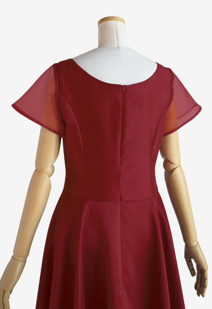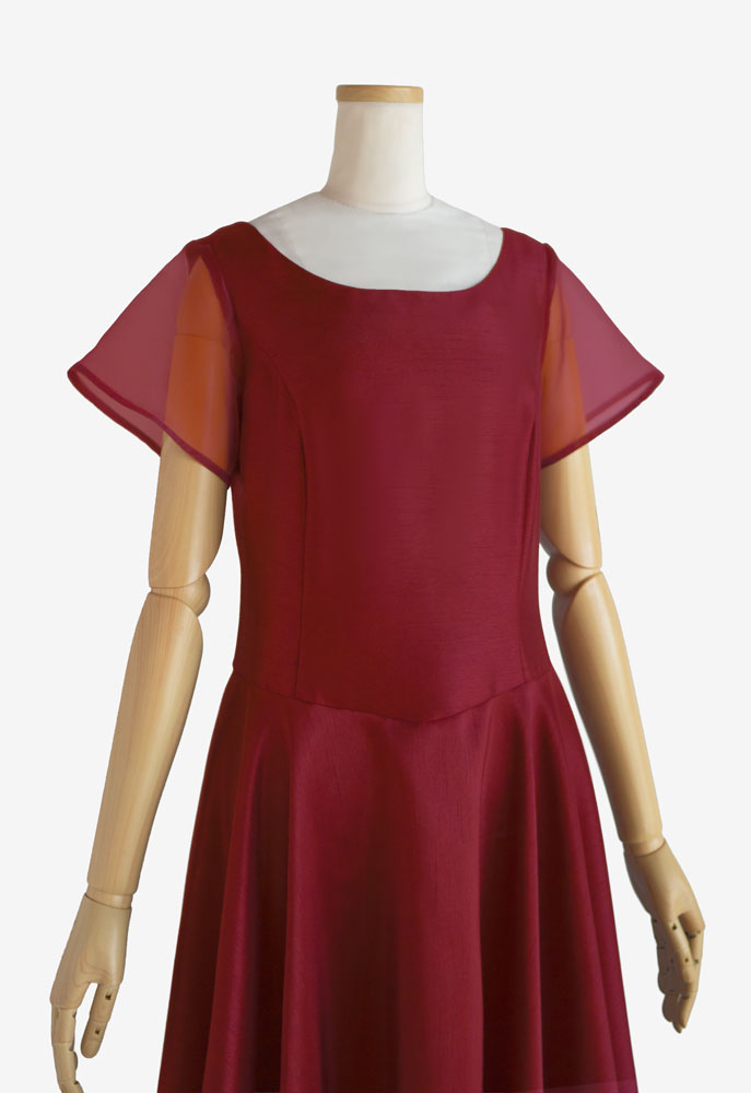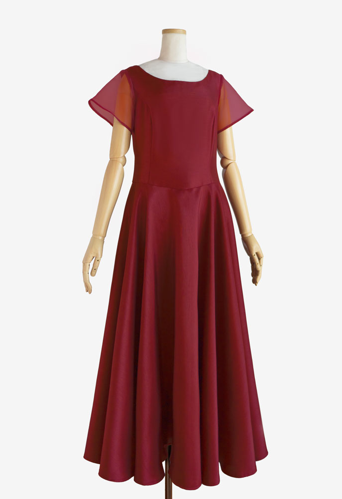 フラドレス73をご注文いただきました。使用した生地はワインのシャンタンとバーガンディーのオーガンジー。踊られる楽曲は「Sweet Memory」。落ち着いた深い赤色のドレスは、心に秘める熱い愛情を表しているかのよう。大切な人への想いを胸に舞うお客様の美しさを、より一層引き立てるフラダンス衣装です。上品で大人の魅力溢れるお衣装は、観る人を魅了することでしょう。