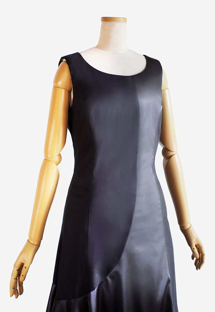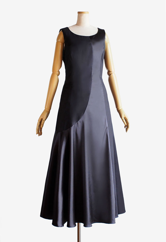 フラドレス39をご注文いただきました。胸元のカッティングが女性のデコルテを美しく魅せる 当店のワンショルダードレスです。ミドルヒップから斜めに入る切り替えからはしなやかにたっぷり広がるサーキュラースカートのデザイン。光沢のあるシックなブラックのストレッチサテンでお仕立てすることにより、美しさが際立つ気品溢れるお衣装となりました。